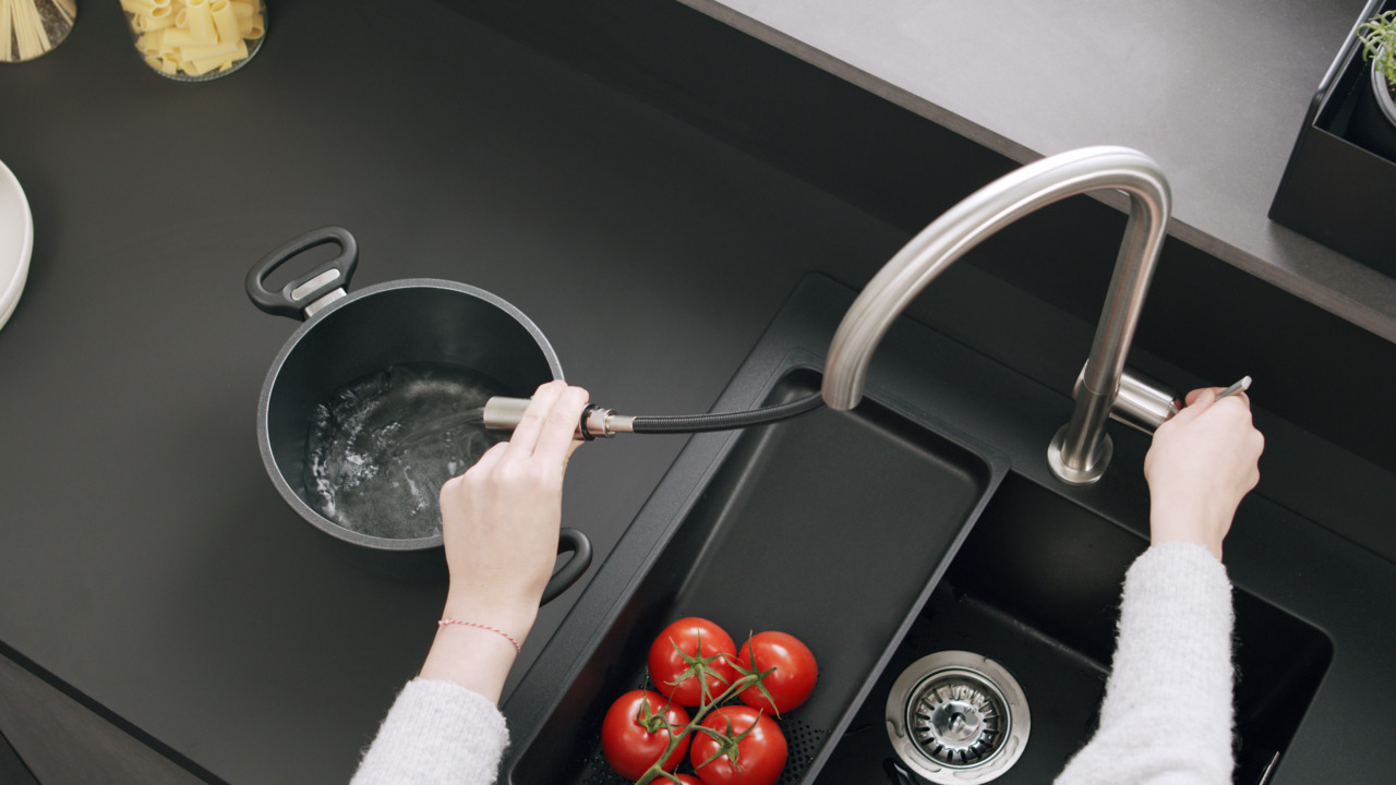 Ein Wasserplatz muss Komfort bieten und eine ausgereifte Einheit bilden. Als Ganzheitliche Lösung sind die drei Komponenten : Abfallsystem, Spüle und Armatur zu sehen. Einfach Clever gelöst, so macht das Ganze Spaß. Wasser ist das zentrale Element in der Küche, Sie greifen öfter zum Wasserhahn, als zum Herd, daher lassen Sie sich von unseren innovativen Lösungen inspirieren.